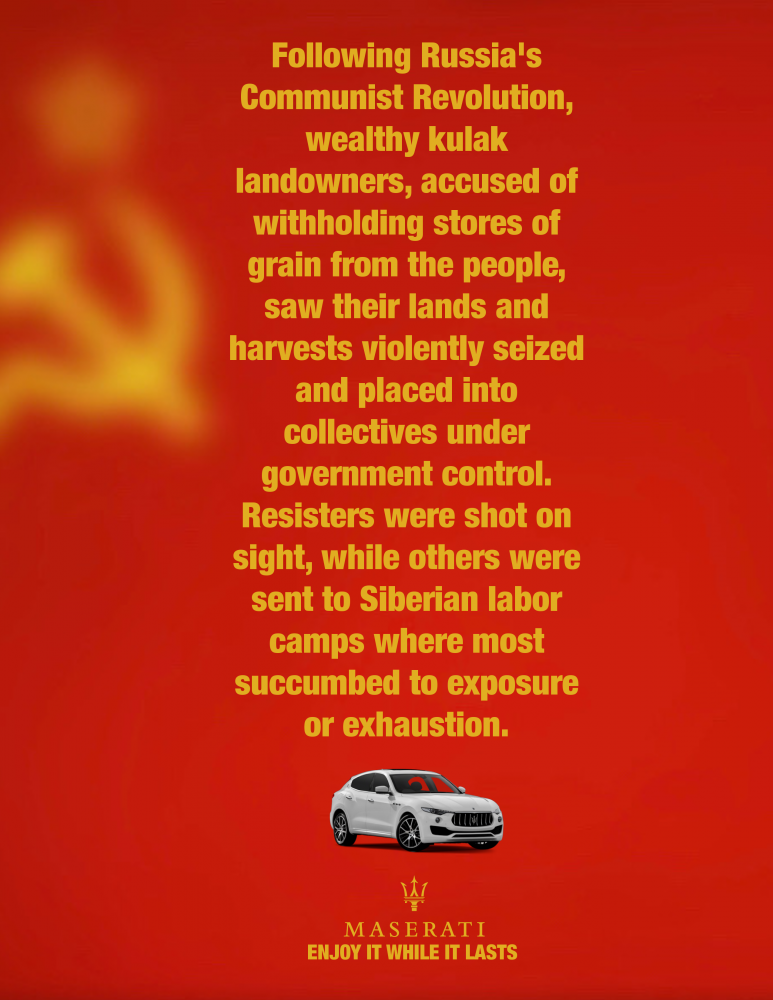 So let’s reach our bourgeois target market with car-based messaging—visible only from gilded offices—that proletarians can’t see.